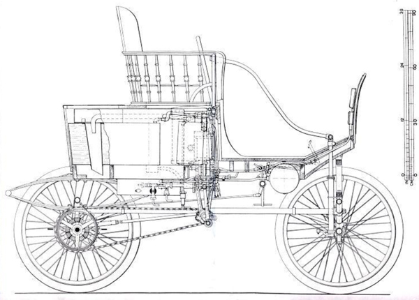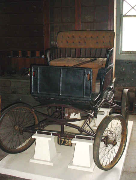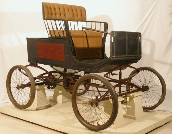 The Locomobile Company was formed in 1899 by Anzi Barber and J.B. Walker who had purchased the right to manufacture a steam car that had been developed by Frances and Freelan Stanley. The Locomobile was originally constructed with a 3.5 h.p. twin cylinder steam engine, having a 14” boiler under the driver's seat. The lightweight, wooden body was closely modeled after the horse-driven vehicles of the period, and was mounted to a tubular steel frame attached to full elliptical springs with pneumatic tires. The Edison Locomobile was modified by Thomas A. Edison who removed all steam related components. The rear of the wooden body was extended approximately 8” to accommodate the bank of nickel-iron alkaline storage batteries being developed by him to drive an electric motor that would power his experimental design.