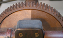 The Locomobile was transported by B.R. Howard & Associates, Inc. staff to their conservation facility. The vehicle was photographically documented prior to partial disassembly of the wooden body. All structural damages were repaired using discreet wooden inserts adhered with hot hide glue and reattached using the original hardware and fasteners. The painted surfaces were cleaned using a non-aqueous based detergent solution and rinsed with mineral spirits. The areas of lifting and flaking paint were consolidated using a reversible thermoplastic resin and carefully relaxed and set down using heated micro-spatulas. Areas of paint loss were toned to blend with adjacent surfaces using a reversible resin based inpainting palette. Unpainted mechanical components were mechanically and/or chemically stabilized prior to the application of a protective lacquer coating to slow future corrosion. Textiles were dry cleaned and stabilized using nearly transparent, polyester fabric overlays and inserts slipped under the tears in the original upholstery. The rubber tires were not treated as per curatorial request. The Edison Locomobile was photo documented after treatment and transported back for exhibit at the Edison National Historic Site, West Orange, New Jersey.